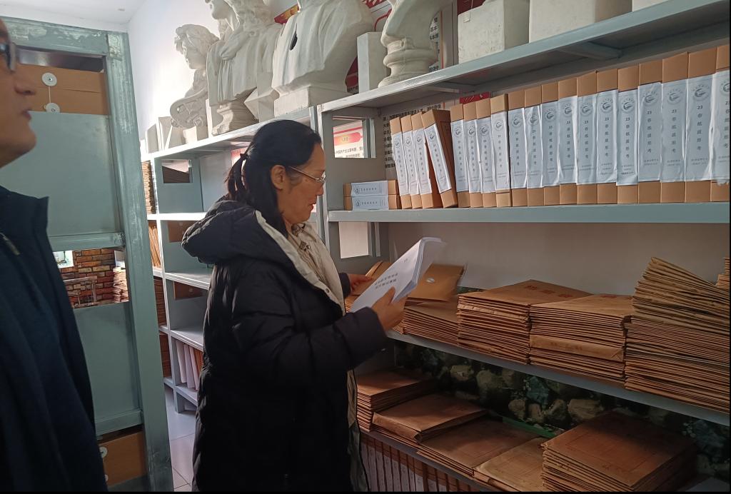 在安新開大查閱評估材料                在安新開大召開學生座談會