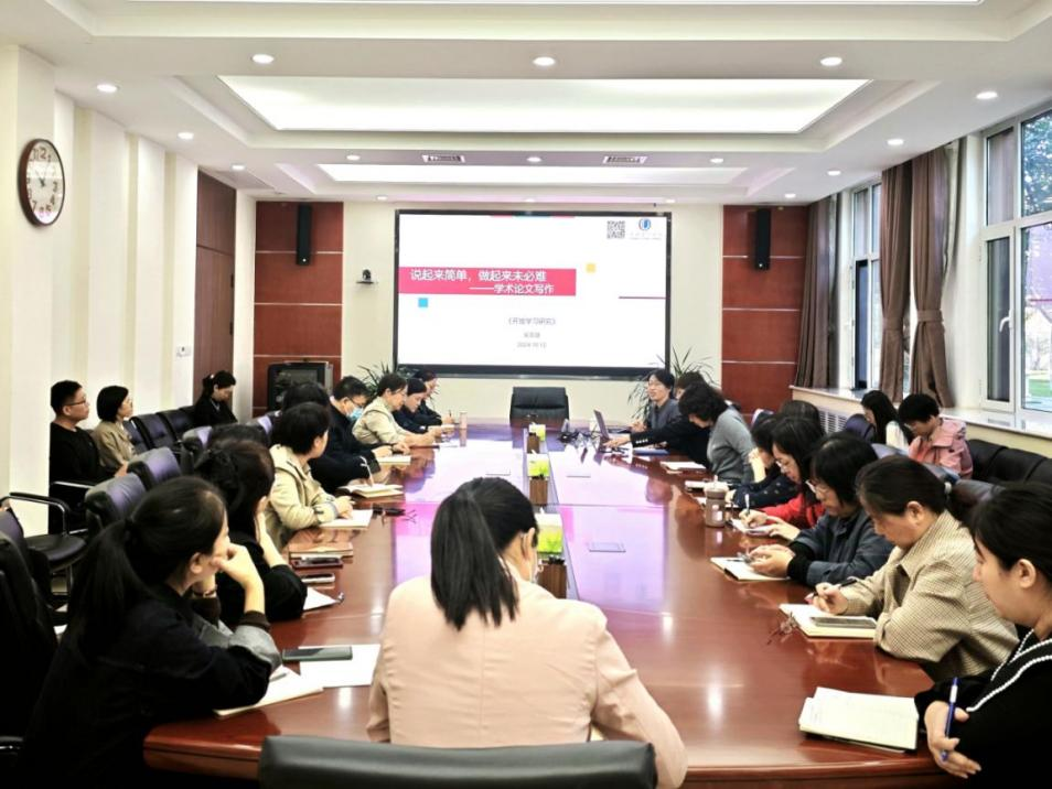 講座特邀北京開放大學《開放學習研究》編輯部主任吳亞婕博士擔任主講嘉賓。吳主任以其深厚的學術造詣和豐富的編輯經驗,為各位教師帶來了一次既具理論高度又貼近實踐的學術指導。她以深入淺出的方式,為教師們揭開了學術寫作的面紗,指明了學術寫作的路徑和方法。