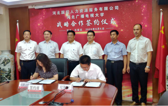 2020年6月5日,我校與河北國控人力資源服務(wù)有限公司簽訂戰(zhàn)略合作協(xié)議。學(xué)校黨委副書記、校長段潤保,黨委常委、副校長張瑞海,培訓(xùn)學(xué)院院長姚志飛,培訓(xùn)學(xué)院副院長龐金,河北省國有資產(chǎn)控股運(yùn)營有限公司黨委書記、董事長王金洲,黨委常委、副總裁、國控資管黨委書記、董事長孫光金,黨委常委、董事張曉明、國控人力資源公司執(zhí)行董事吳濤等出席了儀式。